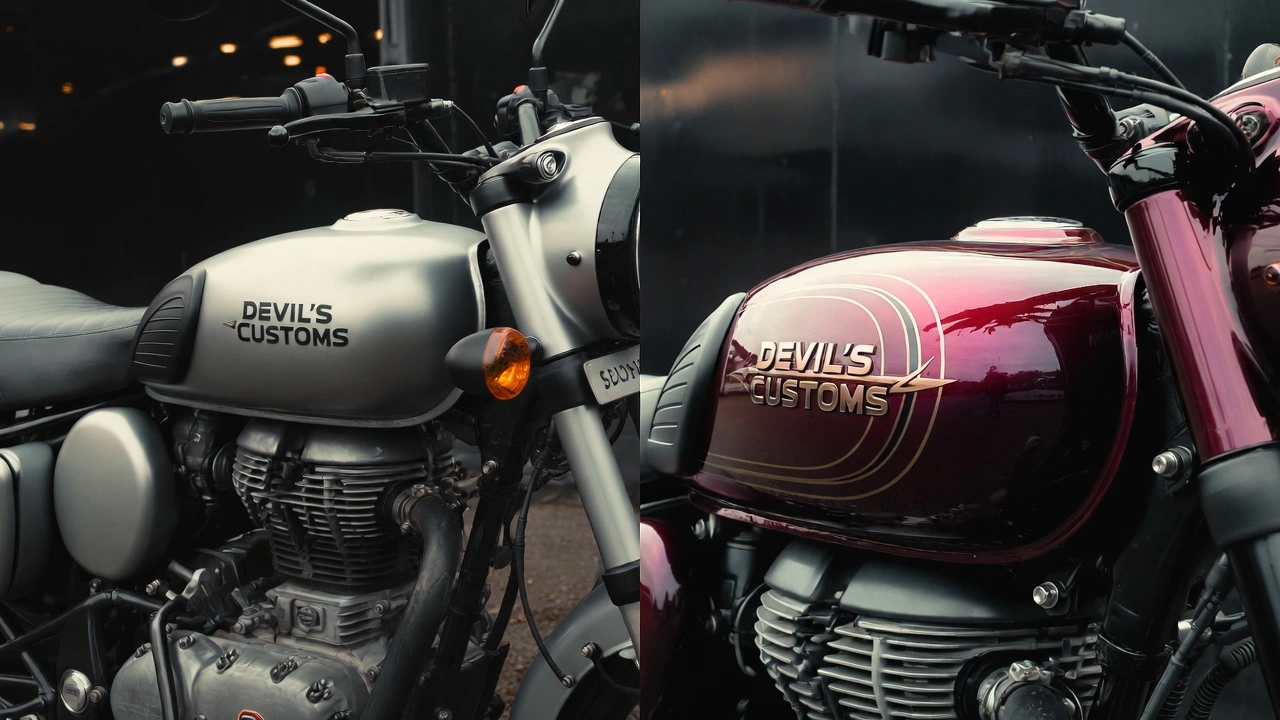 When you purchase a Royal Enfield Classic 350, Jawa Perak, or Interceptor 650 from showrooms, you receive a bike wearing factory paint—efficient, consistent, budget-conscious. But place that stock machine beside a Devil’s Customs creation featuring Devil’s Blood candy finishes, and the difference stuns: one is transportation, the other is rolling sculpture. The gap between factory and handcrafted custom paint isn’t incremental—it’s an entirely different dimension of artistry, depth, and soul that robotic automation fundamentally cannot achieve.